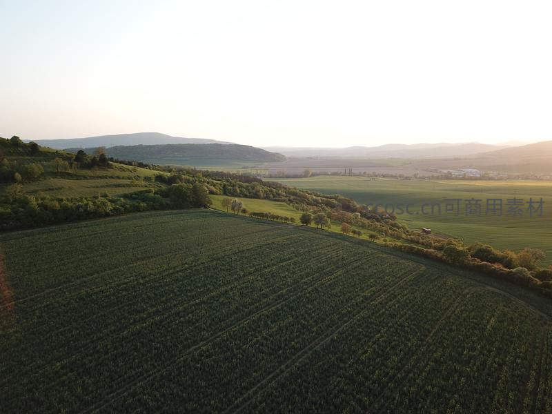 日落时分的农田航拍
