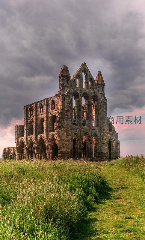 古老修道院废墟矗立于草地之上