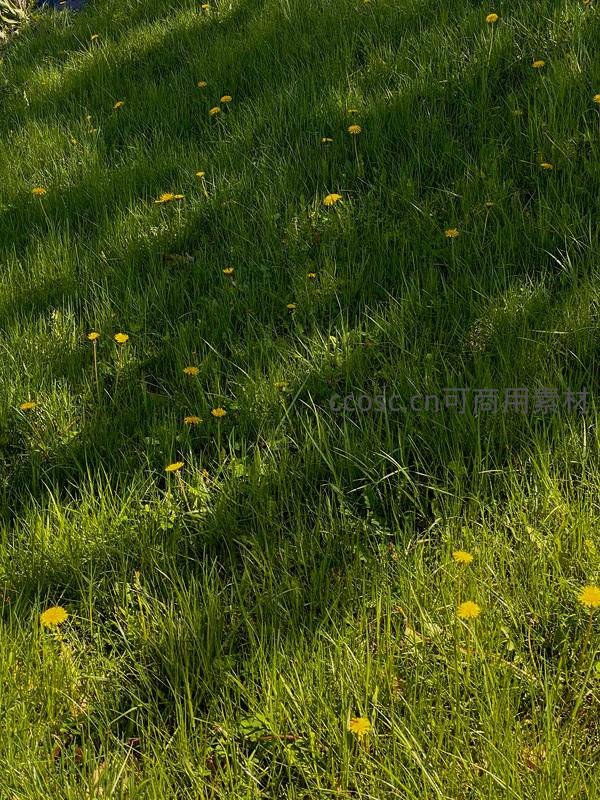 阳光透过叶隙洒在茂密的绿草地上,点点金黄的蒲公英悄然绽放,为这片自然角落增添了无限的活力与温柔。