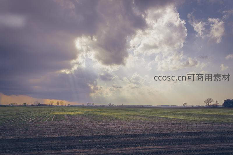 戏剧性云层下的广阔农田