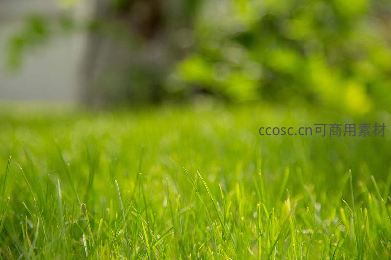 镜头聚焦于被阳光照亮的嫩绿草叶,展现其细腻纹理与蓬勃生机,背景虚化营造出梦幻而宁静的自然氛围。