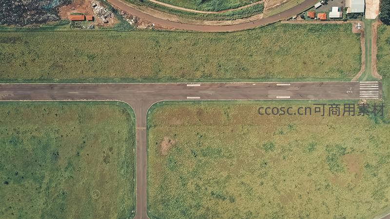 从高空俯瞰,一条笔直的道路穿过广袤的绿色田野,形成清晰的几何线条与自然交融。