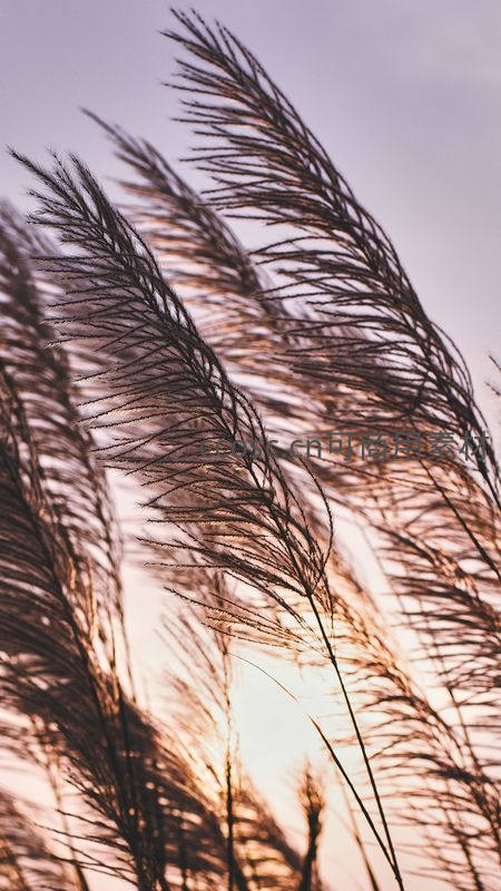 落日的暖光从芦苇缝隙中透出,将纤细的茎叶化为深色剪影,在柔和的暮色中营造出静谧而浪漫的视觉效果。