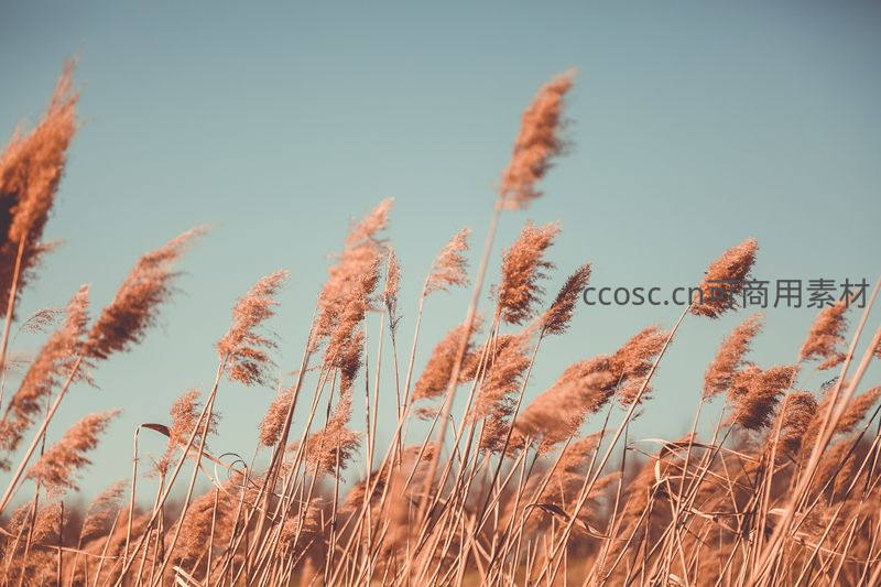柔和的暮色为芦苇披上暖金色外衣,在淡青色天幕下轻轻摇曳,营造出梦幻般的宁静与浪漫氛围。