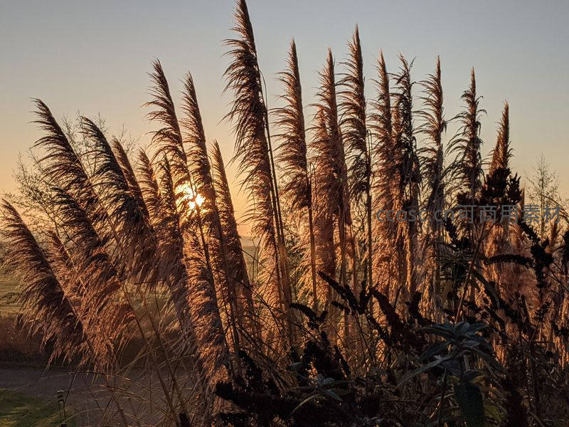 夕阳穿透芦苇丛,洒下金色光辉