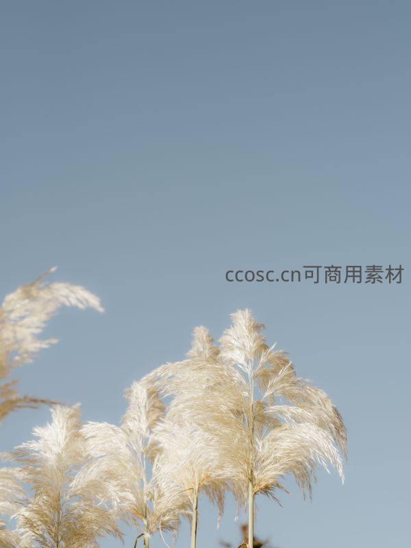 湛蓝天空下洁白芦苇迎风舒展,构图简洁纯净,传递出清新宁静的自然之韵。