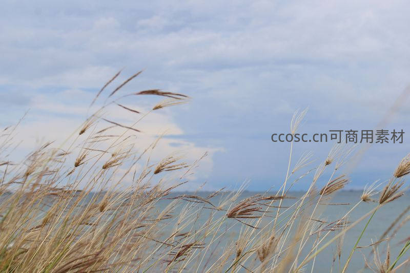 湖畔芦苇随风摇曳,天空云卷云舒