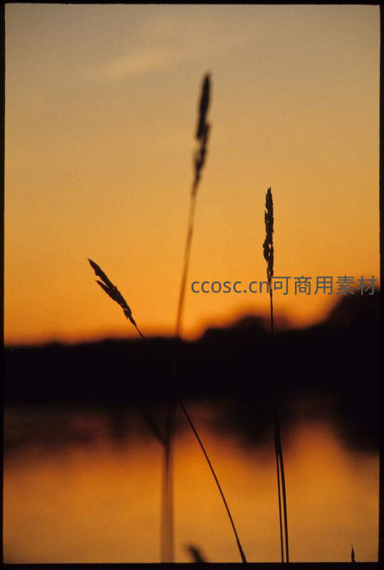 黄昏剪影中的三株芦苇