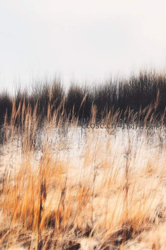 冬季枯黄芦苇在雪雾中若隐若现,营造出朦胧而静谧的北国风光,传递寒冷季节的独特美感。