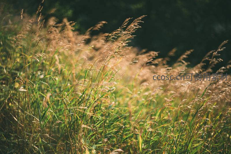 清晨的阳光穿透茂密野草,形成斑驳光影,展现出大地复苏时充满生命力的自然景象。
