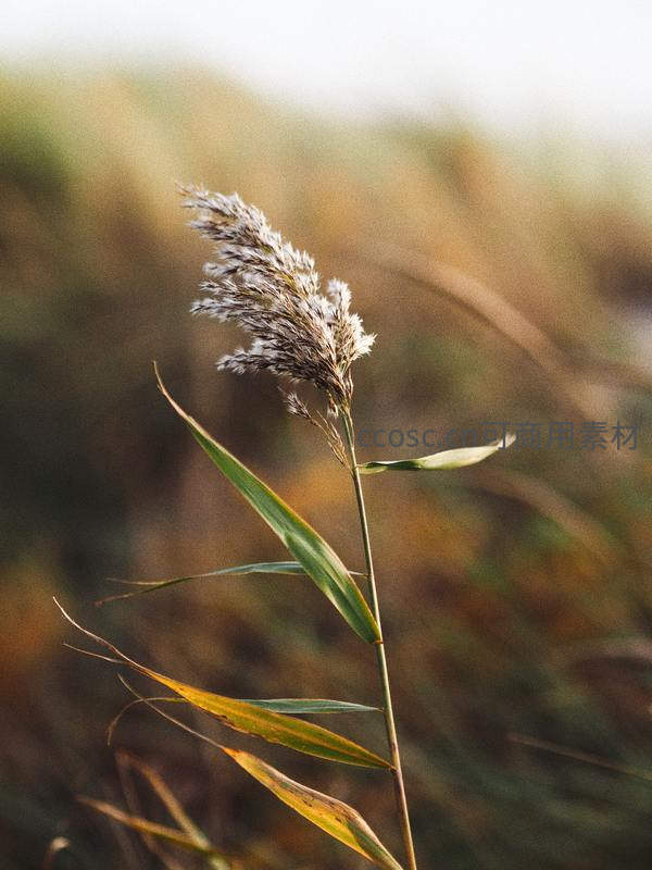 一株独立的芦苇在柔和光线中舒展花穗,细腻纹理与朦胧背景共同营造静谧唯美的意境。