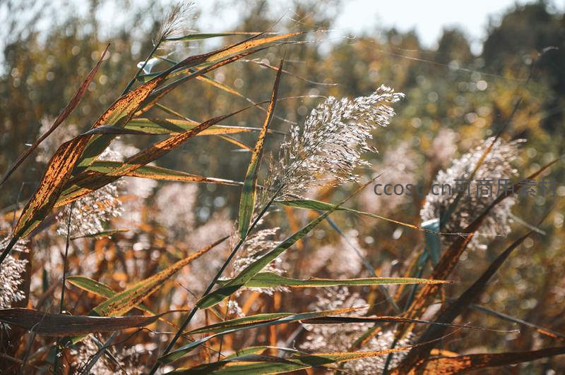 阳光洒落在芦苇穗上,形成梦幻般的逆光效果,叶片边缘泛着金边,展现了自然光影的细腻与温暖。