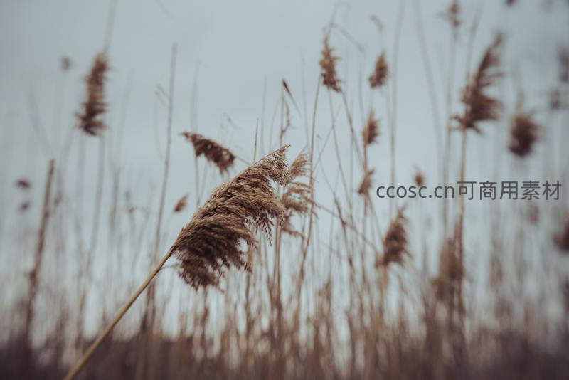 灰调背景下孤独芦苇的深秋写意