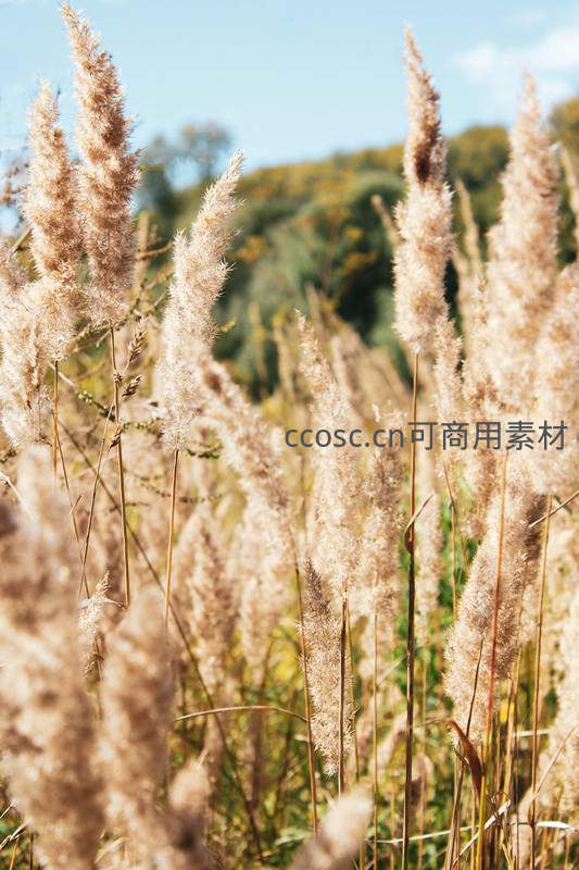 晴空下的芦苇穗,轻盈蓬松