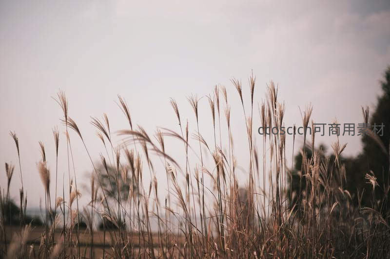 在黄昏的逆光下,芒草的轮廓被勾勒成优美的剪影,背景天空朦胧,整体画面充满诗意与宁静感,仿佛时间在此刻静止。