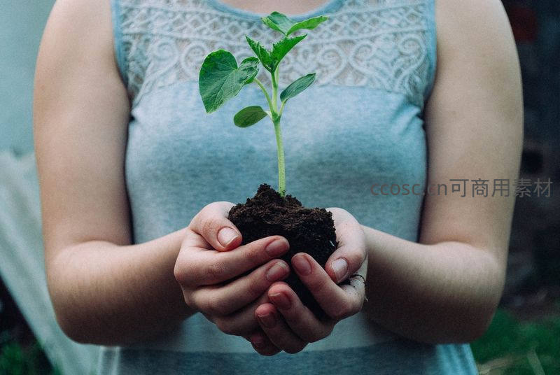 双手捧着新生绿植,象征希望与呵护