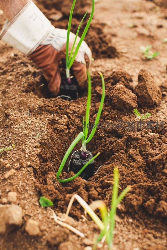 农人亲手栽种葱苗,泥土芬芳见证劳作