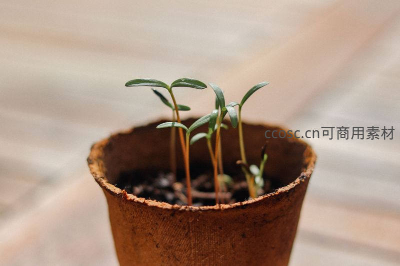 几个细长的幼苗从一个简易的纸质育苗杯中挺立而出,背景是温暖的木质桌面,展现了家庭园艺的朴素与乐趣。