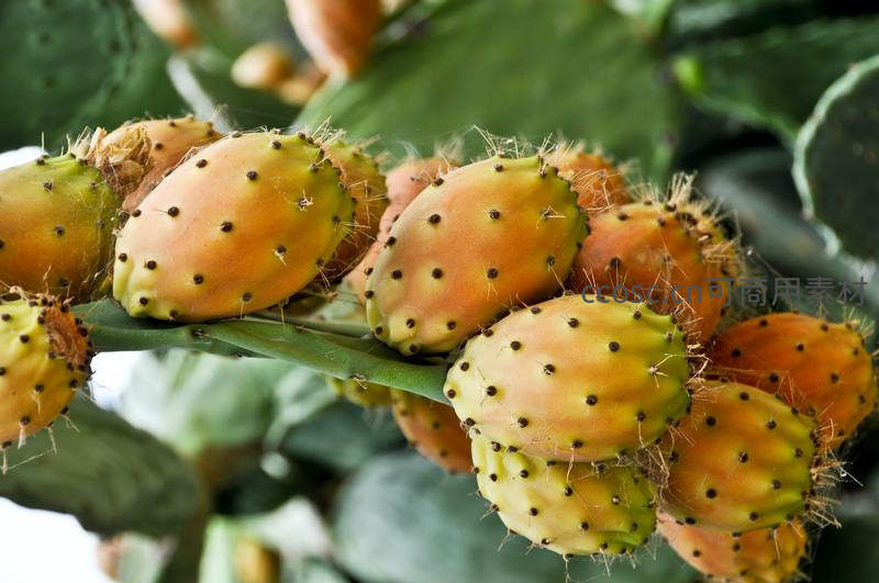 仙人掌果实累累,橙黄饱满带绒刺