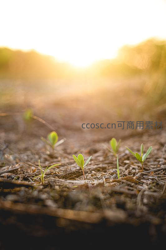 晨曦微光中破土而出的幼苗群