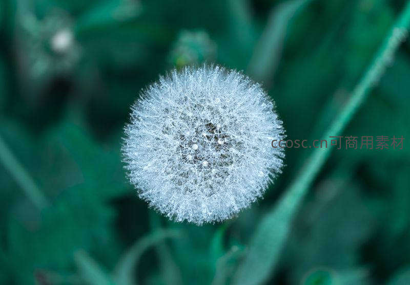 在翠绿背景的映衬下,一朵饱满的蒲公英绒球被微距镜头捕捉,每一根细丝都清晰可见,散发着自然纯净之美。