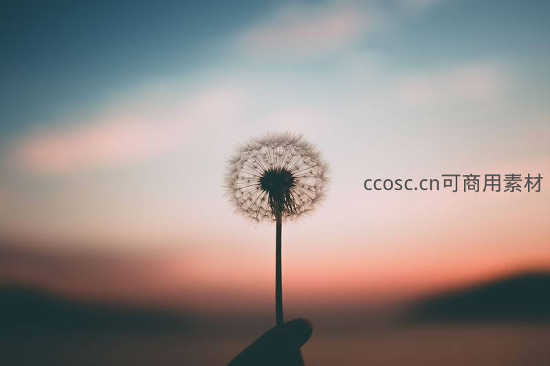 一株蒲公英的黑色剪影矗立在粉蓝渐变的绚丽晚霞前,简洁而富有诗意,象征着生命在壮丽自然中的宁静与永恒。