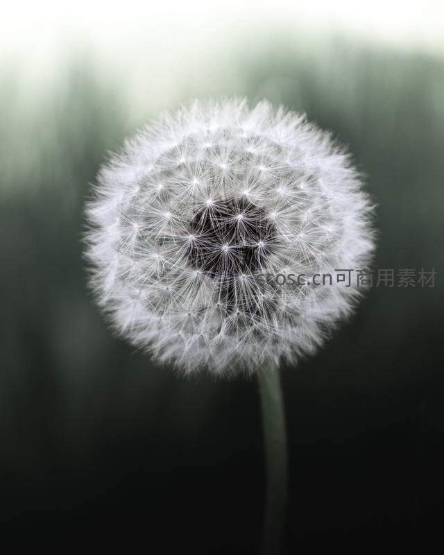 在近乎全黑的背景中,一朵蒲公英被光线照亮,其蓬松的白色绒球与深邃背景形成强烈反差,营造出一种孤寂而唯美的意境。