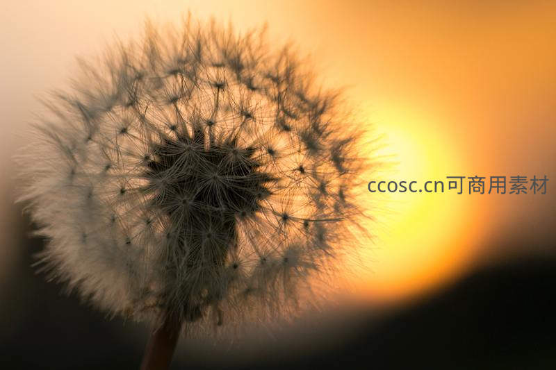 在落日余晖的映衬下,一朵蒲公英的细节被清晰捕捉,光线穿透绒毛,营造出梦幻般的唯美氛围,令人沉醉。