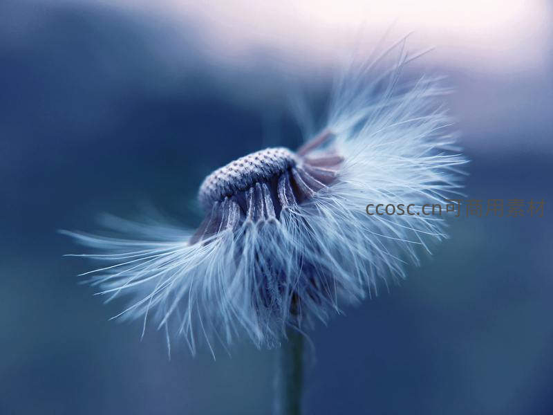 微距镜头下蒲公英绒毛的梦幻蓝调