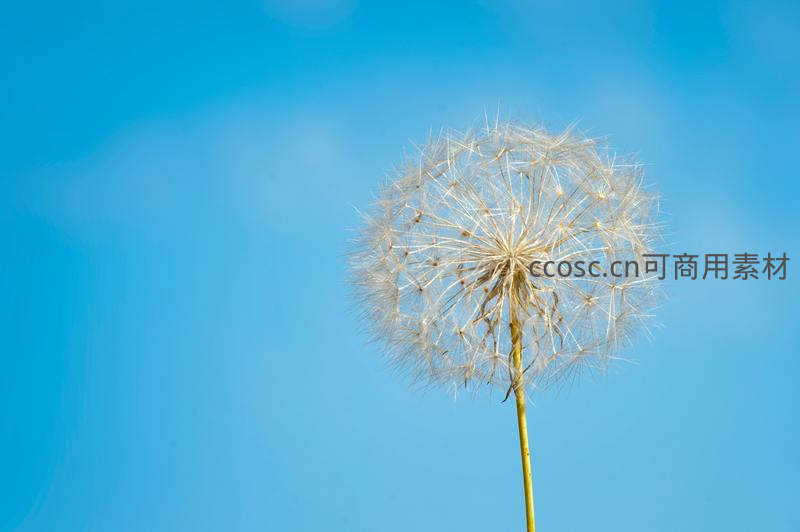 一朵蒲公英在纯净湛蓝的天空背景下静静伫立,构图简洁,凸显其孤独而优雅的姿态,传递宁静致远之美。