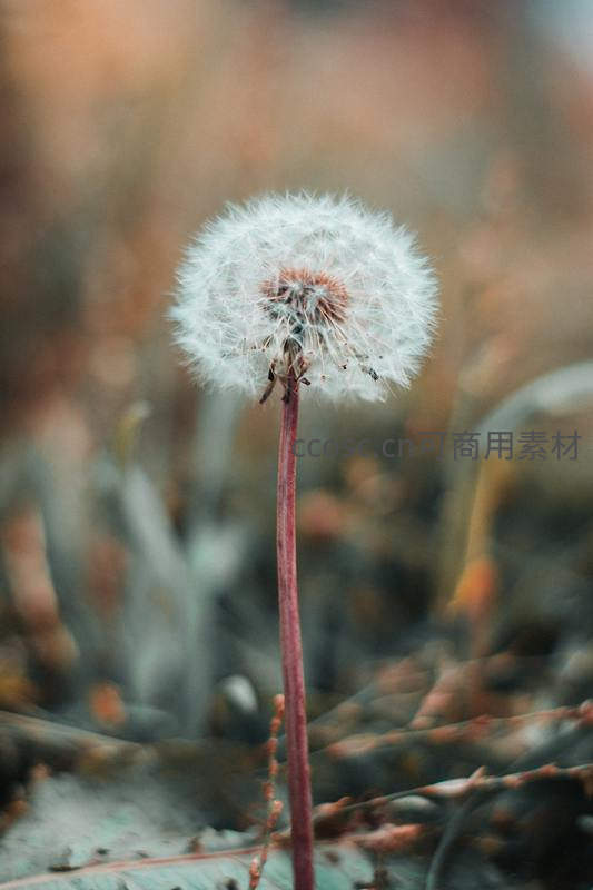 一朵洁白的蒲公英伫立在枯黄的草丛中,暖色调背景衬托出其孤寂却坚韧的生命力,引人遐思。
