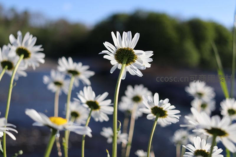 湖畔迎风摇曳的单支雏菊